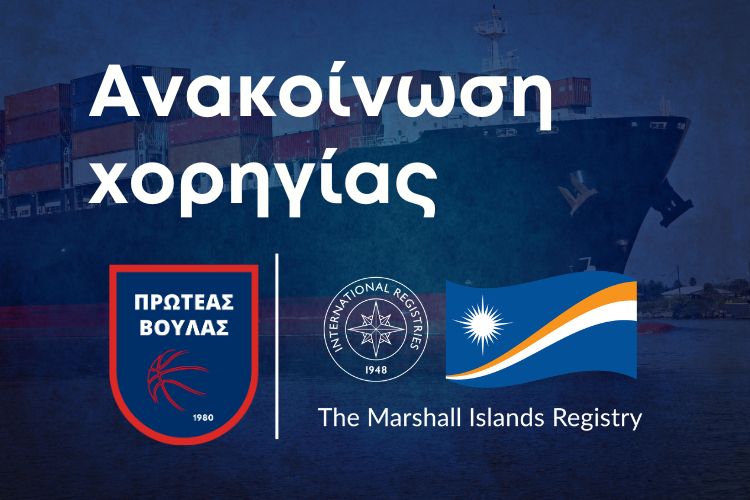 Ο Πρωτέας Βούλας βρίσκεται στην ευχάριστη θέση να καλωσορίσει στην ομάδα των χορηγών του το Νηολόγιο των Marshall Islands, έναν διεθνώς αναγνωρισμένο οργανισμό με μεγάλη εμπειρία και κύρος στον τομέα της νηολόγησης πλοίων και της εγγραφής εταιριών. Το Νηολόγιο των Marshall Islands συγκαταλέγεται στα μεγαλύτερα παγκοσμίως και διατηρεί έναν από τους νεότερους στόλους σε διεθνές επίπεδο.