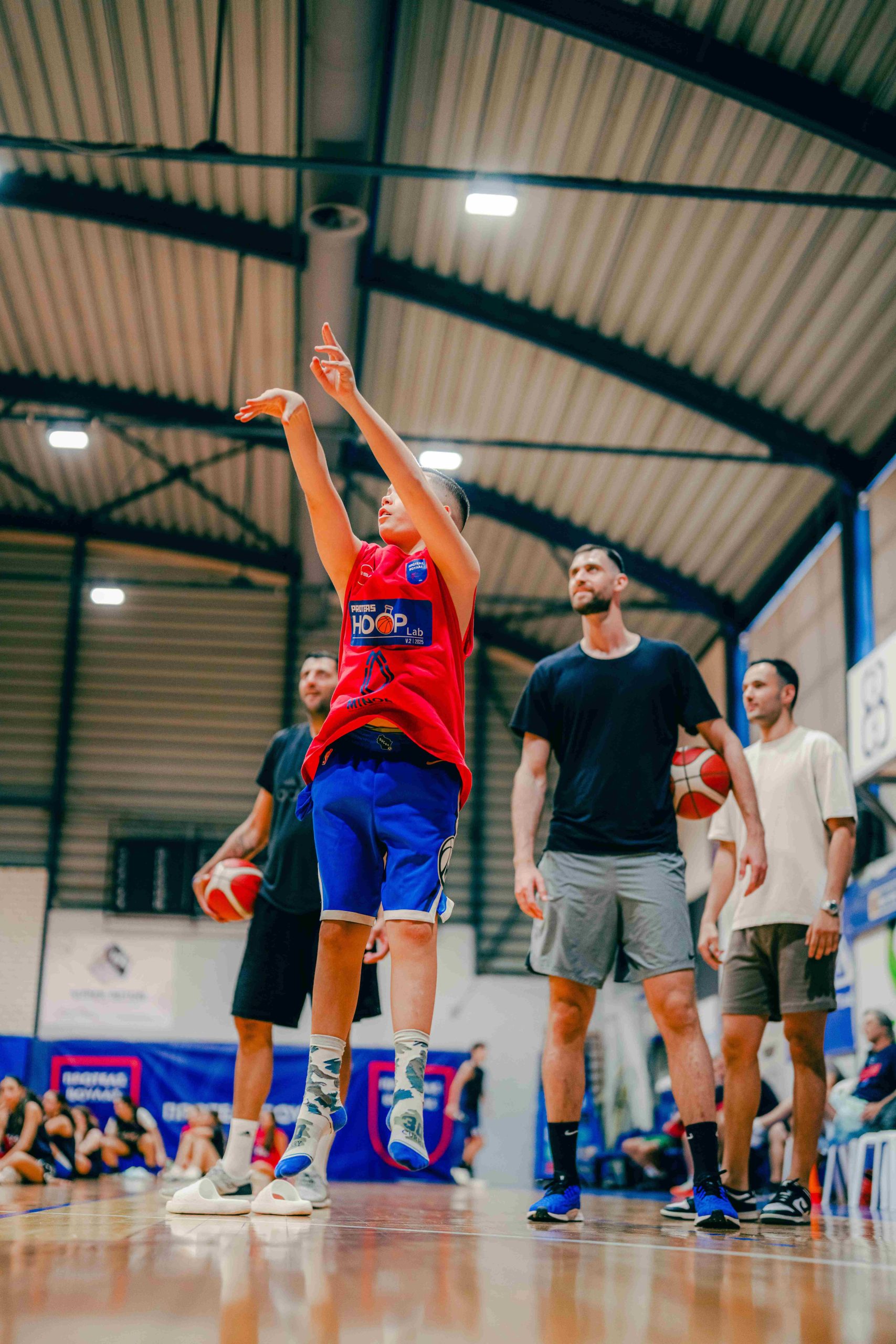 Ο Γιάννης Μπουρούσης, με την εμπειρία και το πάθος που τον χαρακτηρίζουν, ανέλαβε να δείξει στα παιδιά τη σωστή τεχνική του σουτ. Μάλιστα, ξάπλωσε στο παρκέ για να εξηγήσει με απόλυτη ακρίβεια την κίνηση του χεριού, εντυπωσιάζοντας μικρούς και μεγάλους με την αφοσίωσή του στη λεπτομέρεια.
