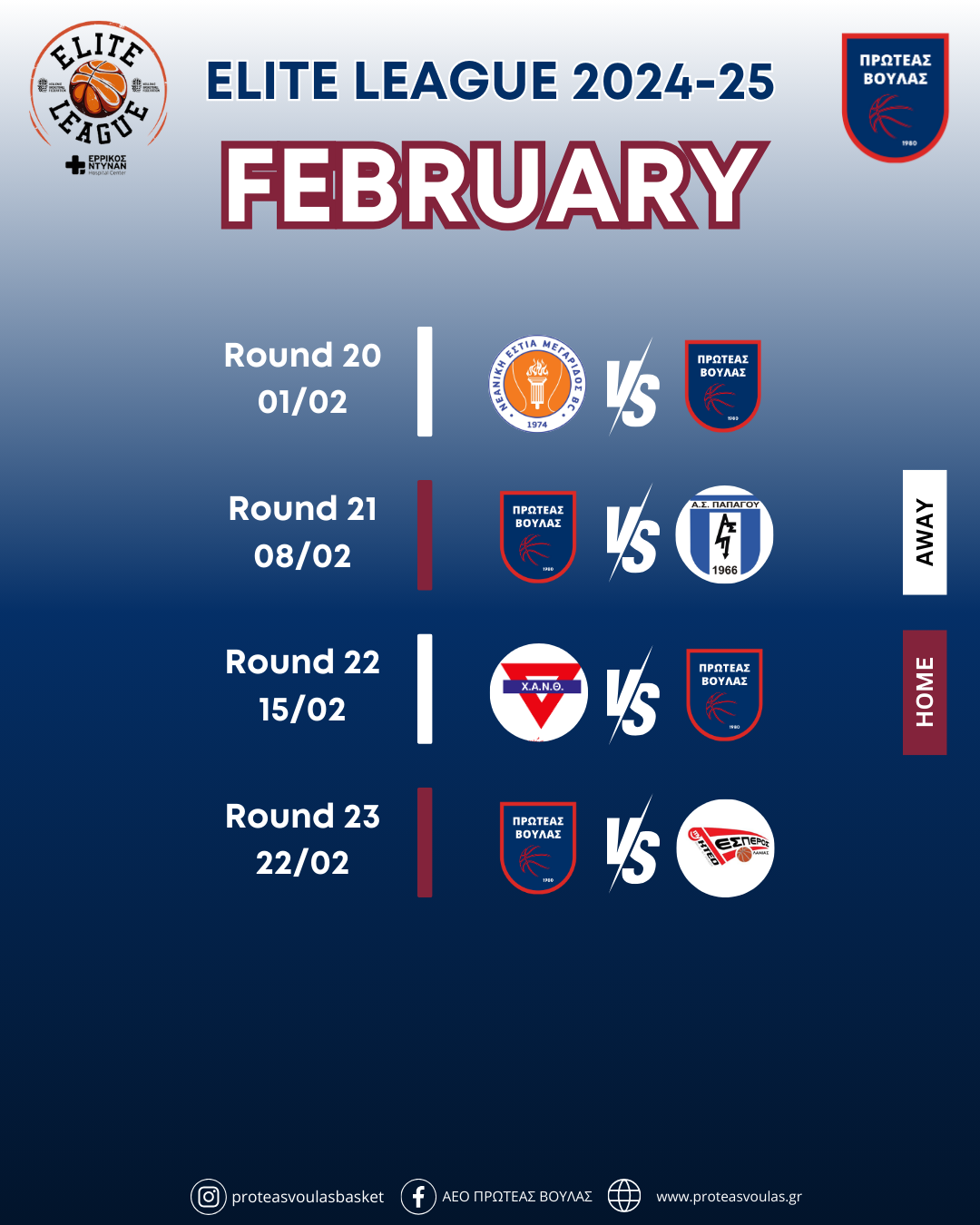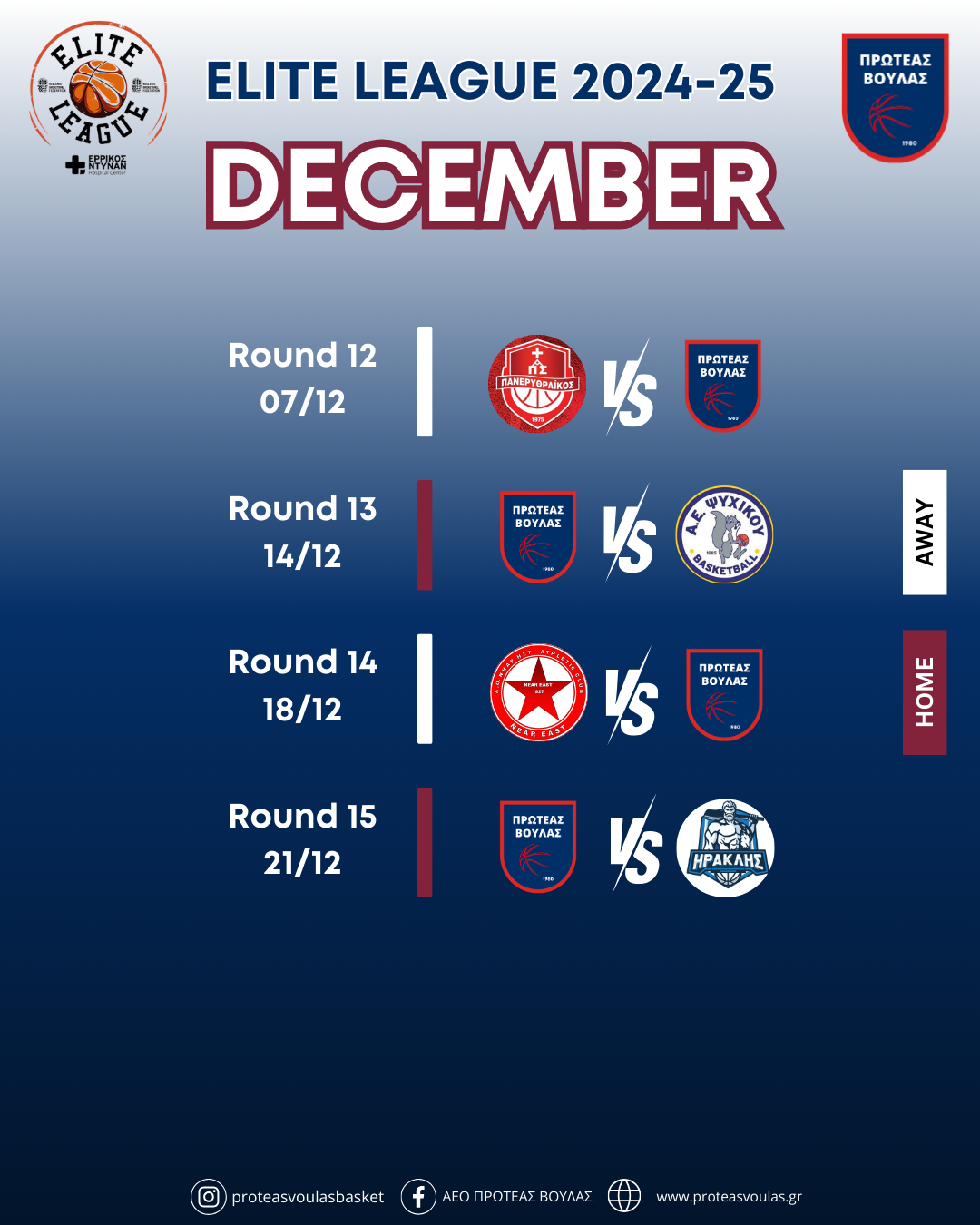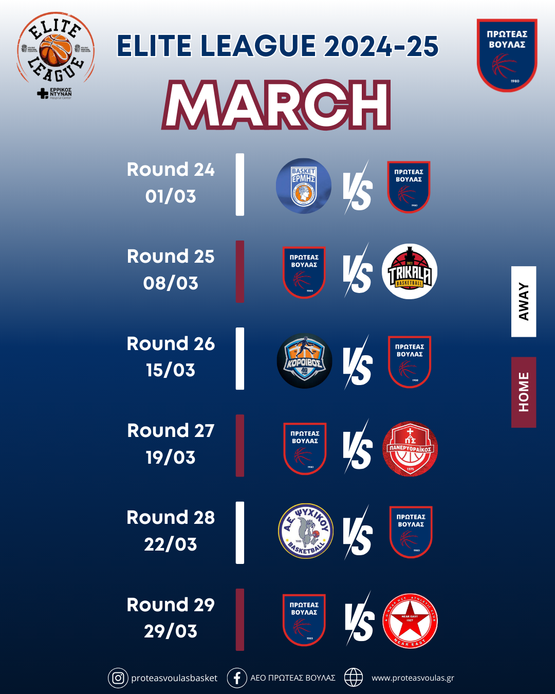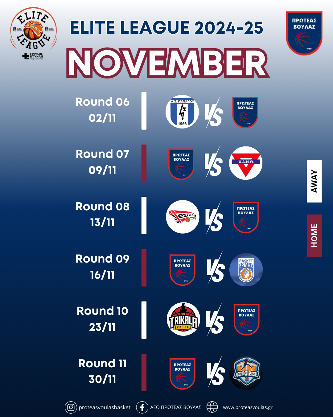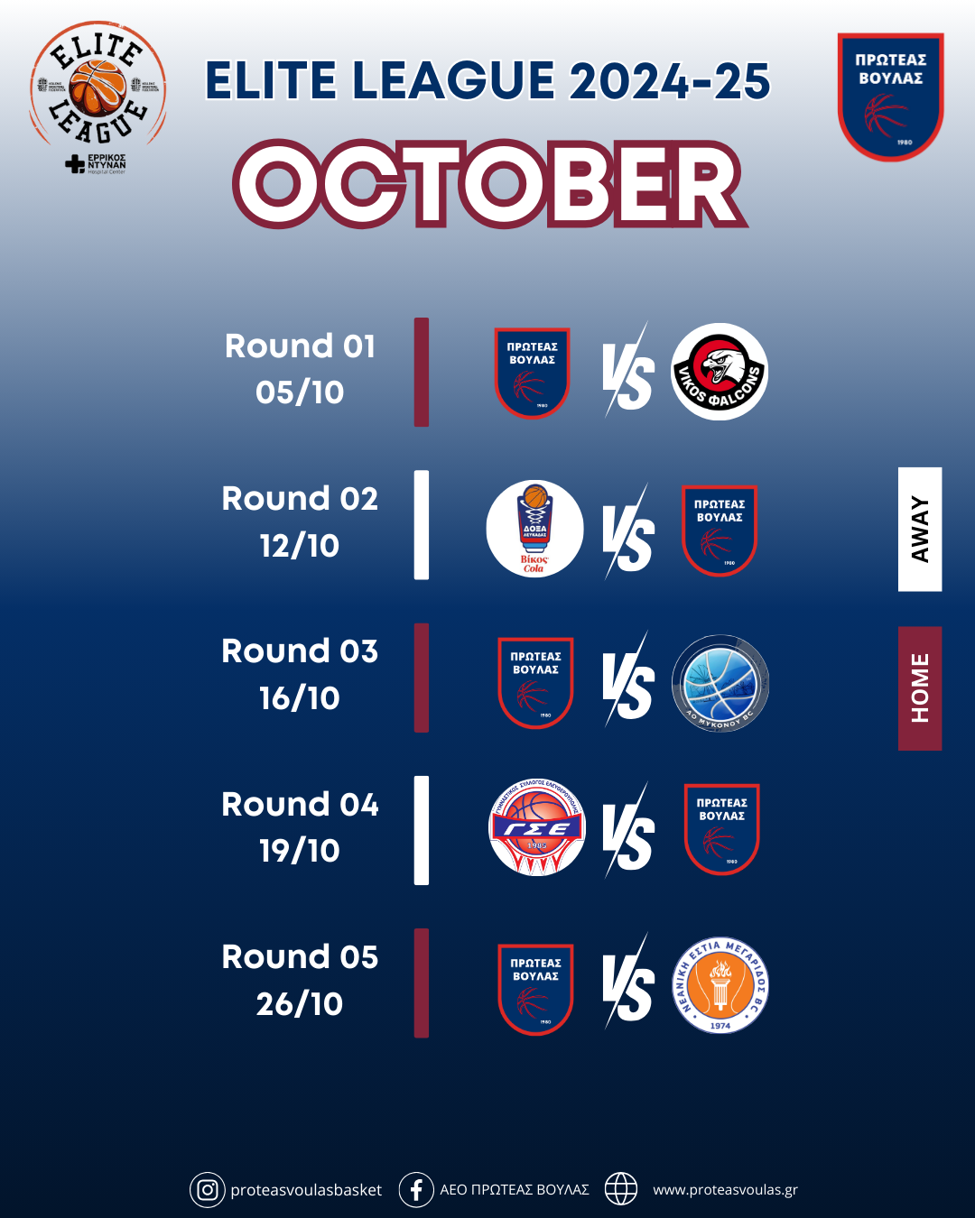 Αναλυτικά το πρόγραμμα της ομάδας μας στην Elite League 2024-25